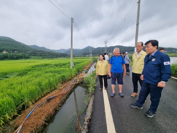 이날 일부 농경지가 강풍과 비에 도복되는 피해를 입은 북도면 수해현장을 찾은 문경복 군수는 현장을 살펴보고 피해농민들을 위로했다.