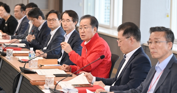 [금요저널] 홍준표 대구광역시장은 8월 14일 대구광역시청 산격청사 대회의실에서 열린 간부회의에서 “눈 앞에 닥친 일에만 몰두하고 수습하는 것은 제대로 된 행정이 아니다”며 “지금 우리가 만들어가는 시정이 대구 미래 50년, 나아가 100년까지도 바꿀 수 있다는 혜안을 가지고 계획을 수립하고 실행해달라”고 당부했다.