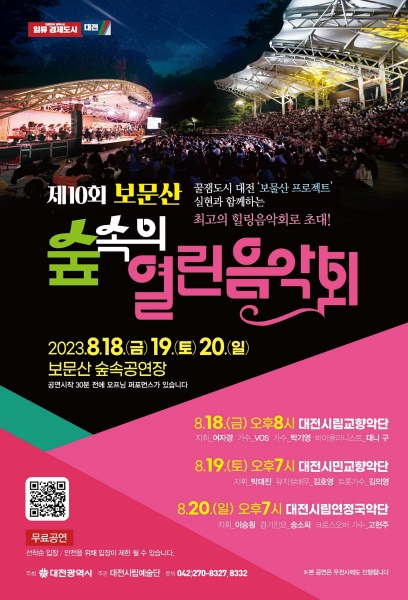 [금요저널] 대전시가 오는 18일부터 20일까지 보문산 숲속공연장에서 ‘보문산 숲속의 열린음악회’를 개최한다.