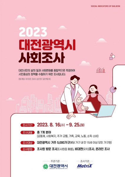 [금요저널] 대전시가 8월 16일부터 9월 25일까지 2023년도 대전 사회조사를 실시한다.