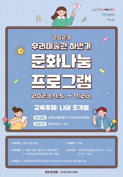 [금요저널] 인천 동구 우리미술관이 2023년도 하반기 문화예술교육 프로그램 ‘문화나눔’ 참여자를 모집한다.