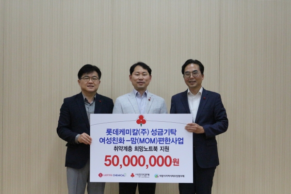 [금요저널] 경기사회복지공동모금회는 롯데케미칼로부터‘맘편한 사업’ 성금 5천만원을 기탁받았다고 21일 밝혔다.