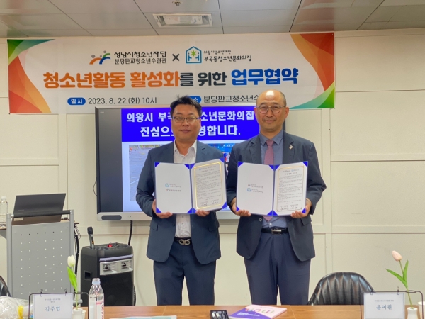 [금요저널] 의왕시청소년재단 부곡동청소년문화의집은 22일 성남시청소년재단 분당판교청소년수련관과 업무협약을 체결했다고 밝혔다.
