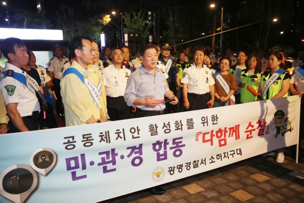 박 시장은 지난 24일 저녁 8시 반 소하동 일대 공원에서 광명경찰서 소하지구대, 광명시 자율방범대 등 30여명과 합동 순찰을 실시했다.