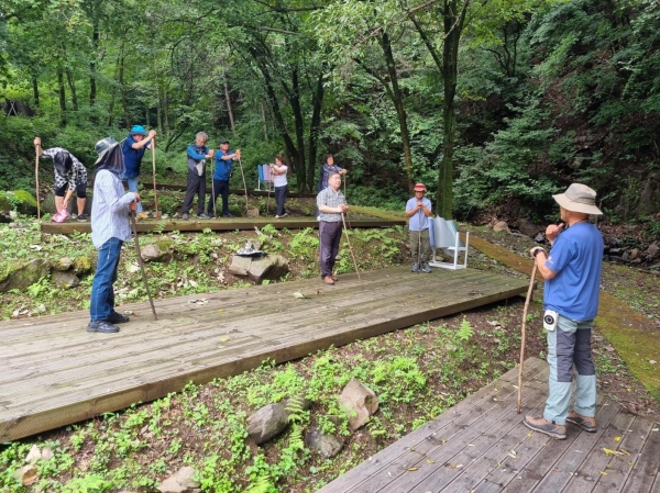 현장 교육 1일 차에는 충북 충주시에 위치한“슬로우파머”에 방문해 농가의 운영방식과 현황, 발전 과정에 대한 전반적인 소개를 듣고 실제 운영하는 치유 프로그램 중“숲속 명상, 힐링 트래킹, 직접 재배하는 산마늘을 활용한 페스토 만들기”를 직접 체험했다.