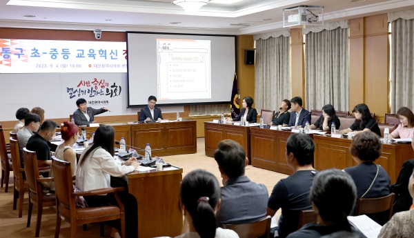 [금요저널] 대전시의회 행정자치위원회 정명국 의원은 4일 의회 소통실에서 동구지역 학교 운영위원장 및 학부모가 참여한 가운데‘동구 초·중등 교육혁신 정책간담회’를 열었다.