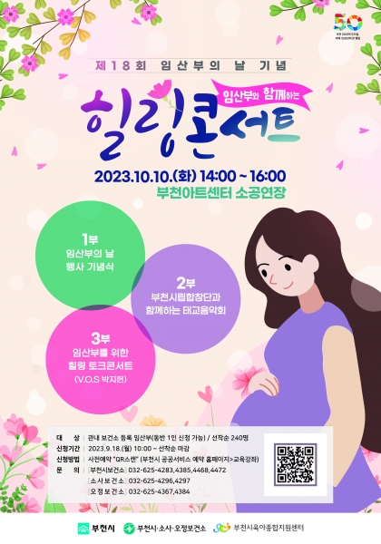 [금요저널] 부천시와 부천시육아종합지원센터는 ‘제18회 임산부의 날’을 기념해 오는 10월 10일 부천아트센터에서 ‘임산부와 함께하는 힐링콘서트’를 개최한다.