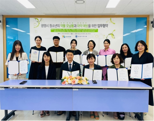 [금요저널] 광명시청소년재단은 지난 6일 광명시청소년수련관에서 광명시약사회와 ‘광명시 청소년의 약물 오남용과 마약 예방을 위한 업무협약’을 체결하고 광명시 청소년의 유해환경 지킴이로써 함께 협력할 것을 약속했다.