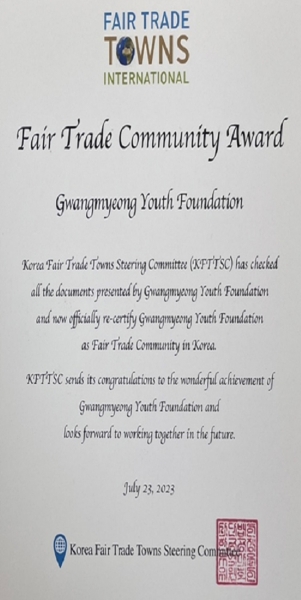 이후 직원 대상 교육 및 청소년이 함께 참여하는 공정무역 실천 캠페인 등을 꾸준히 펼치며 공정무역을 알리기 위해 노력한 점이 인정되어 올해 7월 10일부터 2025년 7월 9일까지 공정무역 실천기관으로 재인증받았다.
