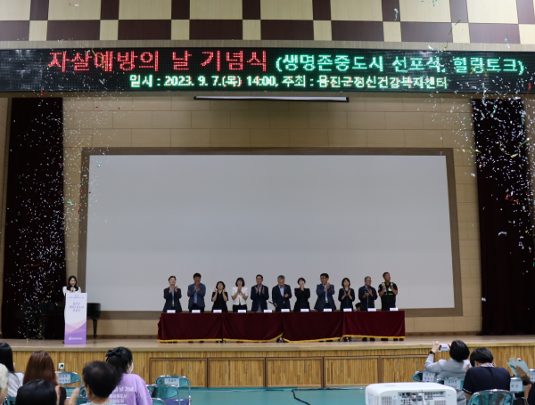 이날 선포식에서는 행사에 참여한 모든 내빈, 지역주민들이 생명존중 서약 및 선서를 하며 생명에 소중함과 자살문제에 대한 심각성을 다시한번 상기하는 시간을 가졌고 선포식 이후에는 ‘긍정의 힘’이라는 주제로 살아가면서 누구에게나 찾아올 수 있는 시련과 아픔에 대해 방송인 서경석씨의 힐링토크 시간이 이어졌다.