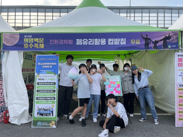 [금요저널] 의왕시청소년재단 부곡동청소년문화의집 청소년운영위원회 ‘라온하제’는 지난 9일 10일 이틀간 열린 제19회 백운호수축제에서 환경보호 기획부스 ‘쓰담쓰담’을 운영해 축제장을 찾은 방문객들의 높은 관심을 끌었다.