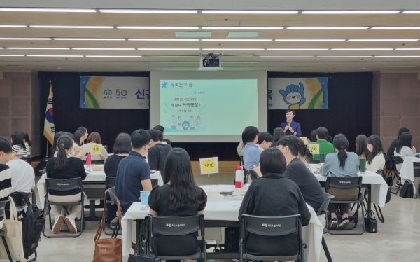 [금요저널] 부천시는 지난 5일과 12일 시청 소통마당에서 신규 임용예정자 124명을 대상으로 공직입문 교육의 일환으로 ‘혁신 및 적극행정 교육’을 함께 진행했다.