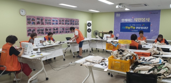 이렇게 수거된 현수막은 부천시 자원봉사센터와 협력해 한달여간 시민봉사자 30명의 손끝에서 150개의 에코백으로 재탄생했다.