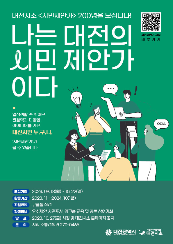 [금요저널] 대전시가 작지만 의미 있는 공공활동을 주도할 ‘일상공감 시민제안가’를 모집한다.