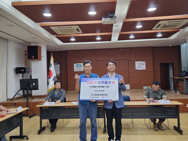 박준희 부곡동장은 “지역 내에서 적극적인 안보활동을 펼치고 있는 방위협의회에서 이렇게 성금까지 기부해 정말 감사한 마음”이라며 “성금은 추석 명절 위문에 소중하게 사용하겠다”고 답했다.