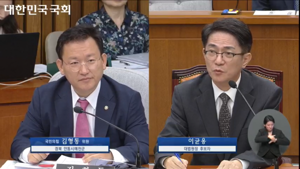 [금요저널] 국민의힘 김형동 의원은 19일 국회에서 열린 대법원장 임명동의에 관한 인사청문회특별위원회 제3차 회의에서 이균용 대법원장 후보자에게 안동지방법원 승격 신설의 필요성에 대해 설파했고 이 후보자가 이에 대해 긍정적으로 화답하며 안동지방법원 승격 신설의 청신호가 켜졌다.