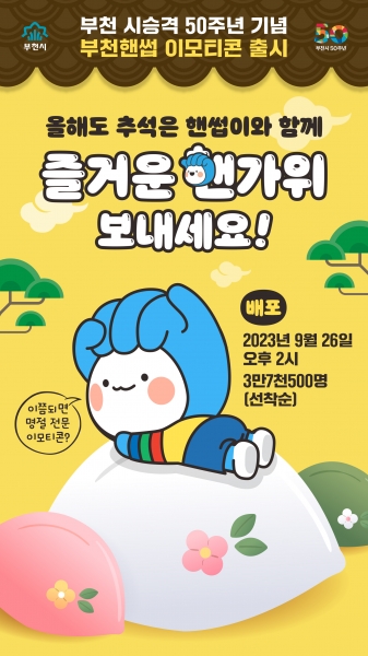 조용익 부천시장은 “이번 이모티콘 배포는 부천시 시승격 50주년과 추석 명절을 맞아 기획된 특별 이벤트”며 “올 추석은 ‘부천핸썹’ 캐릭터와 즐거운 한가위 보내시길 바란다”고 전했다.