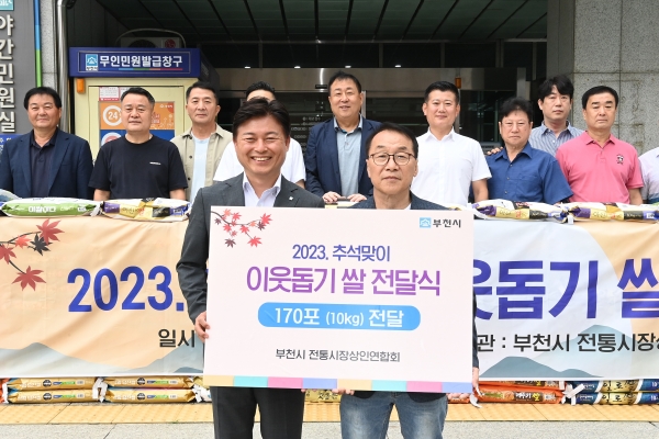 부천시전통시장상인연합회는 지역사회의 어려움을 함께 나누고자 지난 2012년부터 매해 추석 명절에 쌀 기부로 이웃사랑을 적극 실천해오고 있디. 쌀은 부천시 통합돌봄과를 통해 관내 저소득 가정에 전달될 예정이다.