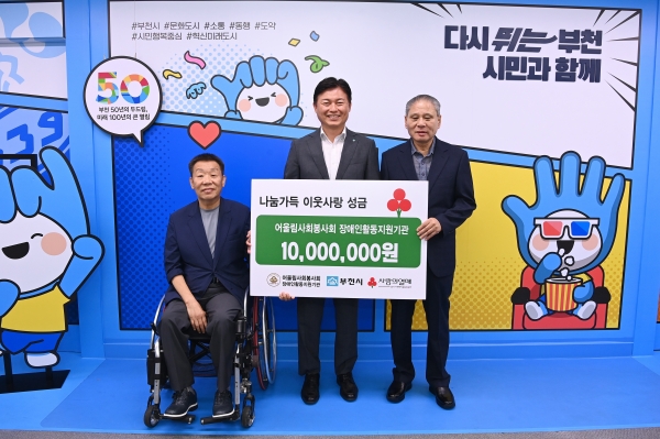 [금요저널] 부천시는 지난 19일 어울림사회봉사회 장애인활동지원기관에서 부천시 저소득 장애인 지원을 위해 성금 1,000만원을 기탁했다고 밝혔다.