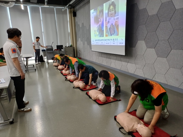 지진재난 대비 행동요령 화재 시 행동요령 폭염 시 행동요령 감염병 예방법 등의 재난 대비 교육 및 심폐소생술 실습 교육을 주제로 한 직무교육에 이어 자율방재단 활성화를 위한 워크숍이 진행됐다.