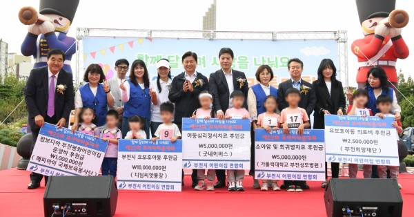 조용익 부천시장은 “매년 어려운 아동들이 희망을 가질 수 있도록 도와주셔서 깊은 감사의 말씀 드린다. 앞으로도 아이들이 건강하게 자랄 수 있도록 보육환경을 개선하고 지원하는 데 적극적으로 힘쓰겠다”고 말했다.
