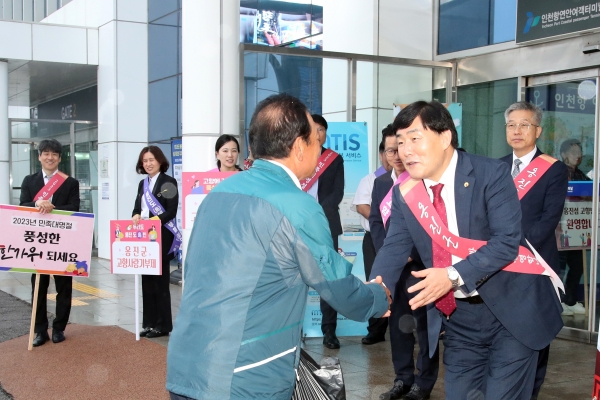 [금요저널] 옹진군은 민족대명절 추석을 맞이해 27일부터 28일까지 2일간 인천연안여객터미널에서 귀성객 환송 인사를 실시했다고 밝혔다.