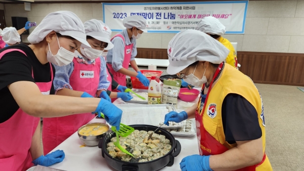전 나눔 행사에 참여한 적십자 회원 및 다문화 봉사자들은 독거노인 등 관내 취약계층을 위해 삼색꼬치전, 동태전, 야채전, 동그랑땡 등을 부치며 구슬땀을 흘렸다.