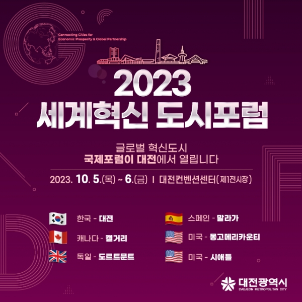 [금요저널] 대전시는 5일부터 6일까지 이틀간 대전컨벤션센터에서 ‘2023 세계혁신도시포럼’을 개최한다.