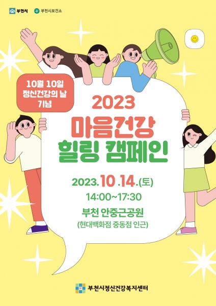 ‘2023년 마음건강 힐링 캠페인’은 부천시민의 정신건강에 대한 중요성을 알리고 정신질환에 대한 사회적 인식을 개선하고자 마련됐다.