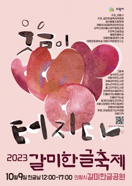 김성제 의왕시장은 “이번 갈미한글축제에 많은 시민이 참여해 공동체 활성화를 위한 기반을 다지고 한글의 우수성을 널리 홍보하는 뜻깊은 자리가 되기를 바란다”고 전했다.