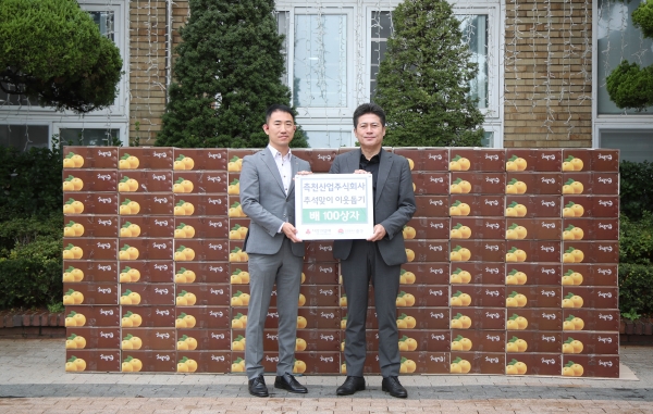 측천산업주식회사, 인천 중구에 배 100상자 기탁
