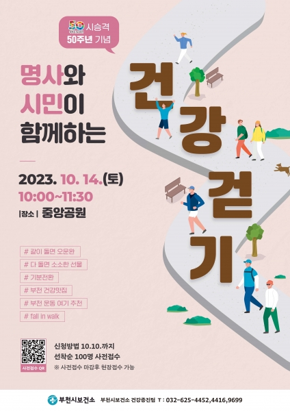 [금요저널] 부천시가 시 승격 50주년을 기념해 오는 10월 14일 ‘명사와 시민이 함께하는 건강걷기’ 행사를 개최한다.