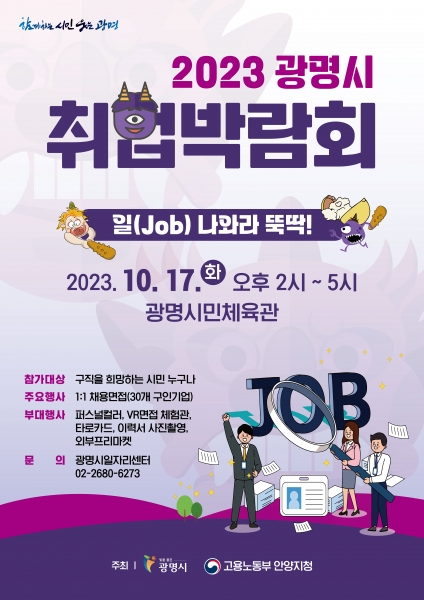 [금요저널] 광명시는 오는 17일 오후 2시부터 5시까지 광명시민체육관에서 일자리 활성화를 위한 ‘일 나와라 뚝딱’ 2023년 광명시 취업박람회’를 개최한다.