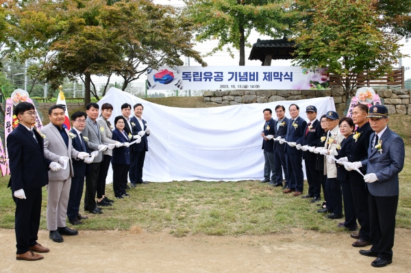 [금요저널] 의왕시는 13일 왕송호수공원에서 일제강점기 조국의 자주독립을 위해 헌신하신 애국선열들의 숭고한 희생정신을 널리 알리고자 ‘의왕시 독립유공기념비’ 제막식을 거행했다고 밝혔다.