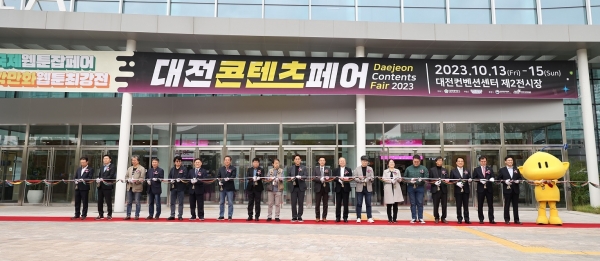 게임, 웹툰, 캐릭터 등 지역 콘텐츠산업을 한눈에 볼 수 있는 이번 행사는 13일 노기수 대전시 문화관광국장을 비롯한 20여명의 국내·외 주요 인사와 수많은 관람객이 참석한 가운데 대전컨벤션센터 제2전시장에서 개막식으로 막을 올렸다.