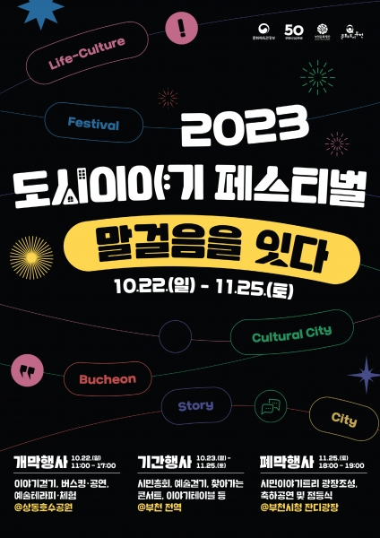 부천문화재단은 오는 10월 22일부터 11월 25일까지 35일간 부천 전역에서 ‘2023 도시이야기 페스티벌’을 개최한다.