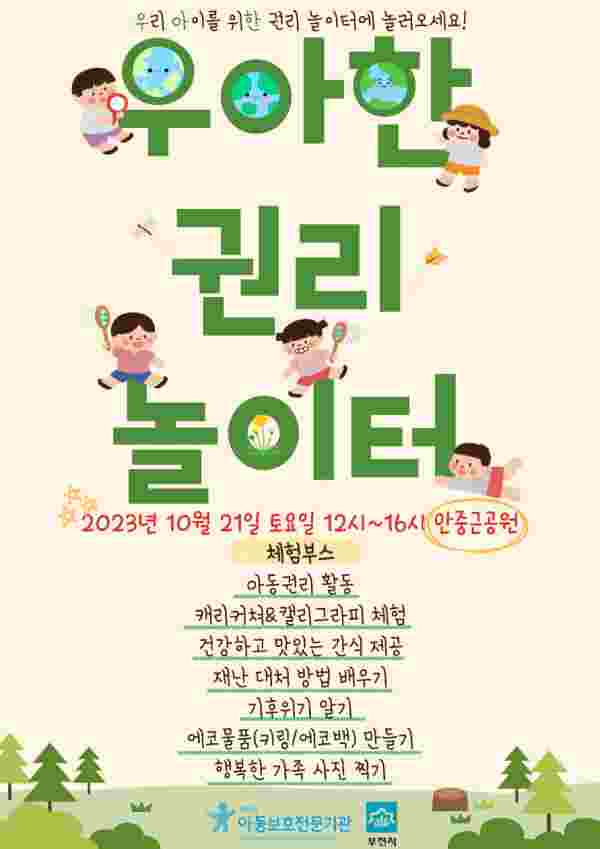 [금요저널] 부천시는 오는 10월 21일 낮 12시 안중근공원에서 2023년 아동문화 행사인 ‘우아한 권리 놀이터’를 개최한다고 밝혔다.