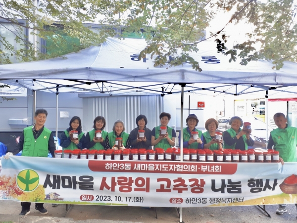 [금요저널] 광명시 하안3동 새마을부녀회·지도자협의회는 지난 17일 동 행정복지센터에서 ‘사랑의 고추장 나눔’ 행사를 진행하고 직접 담근 고추장을 관내 독거노인, 중증장애인 등 취약계층 150여 가구와 경로당에 전달했다.