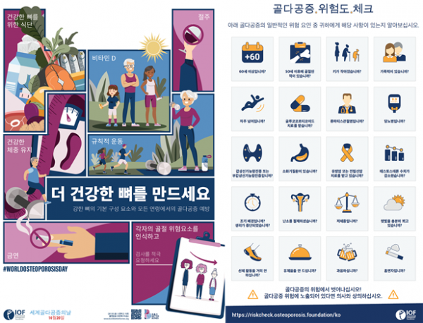 ‘골다공증 예방과 관리를 위한 10대 생활수칙’은 리플릿과 카드뉴스로 제작해 질병관리청 누리집과 국가건강정보포털에 게재된다.