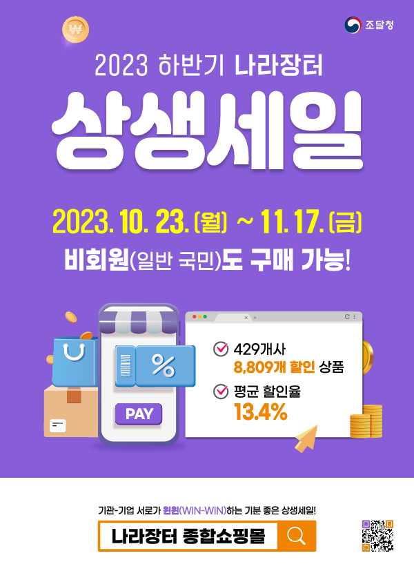 조달청, 23일부터 한 달간 ‘나라장터 상생세일’ 개최