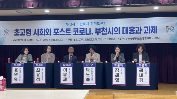 박노숙 한국노인복지관협회장이 좌장으로 참석했으며 이봉재 서울신학대학교 사회복지학과 교수가 ‘초고령 사회와 포스트 코로나, 부천시의 대응과 과제’에 대해 발제했다.