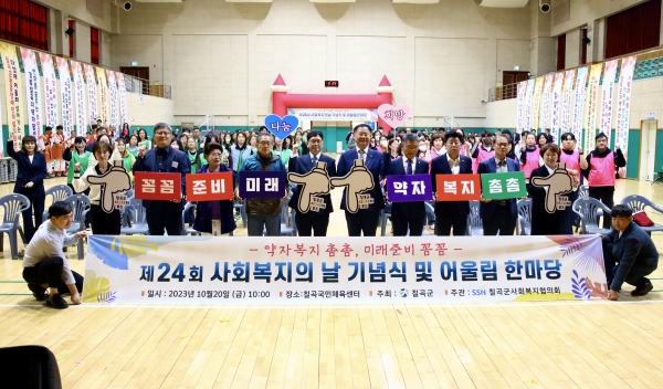 [금요저널] 칠곡군은 지난 20일 칠곡국민체육센터에서 사회복지시설 종사자 및 관계 공무원 150여명이 참석한 가운데 “약자복지 촘촘, 미래준비 꼼꼼”이라는 슬로건으로 제24회 사회복지의 날 기념식 및 어울림 한마당을 개최했다.