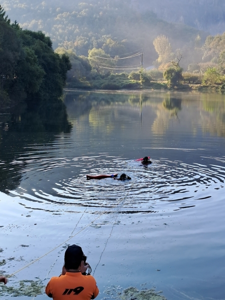 선착한 자인119안전센터 출동대는 물속에 완전히 가라앉은 사고 차량의 정확한 위치를 구조대원들에게 전파했고 잠수장비를 착용한 구조대원들의 수중수색 중 수심 5m 지점 차량 내 요구조자 A씨를 발견해 신속히 육상으로 구조 완료했다.