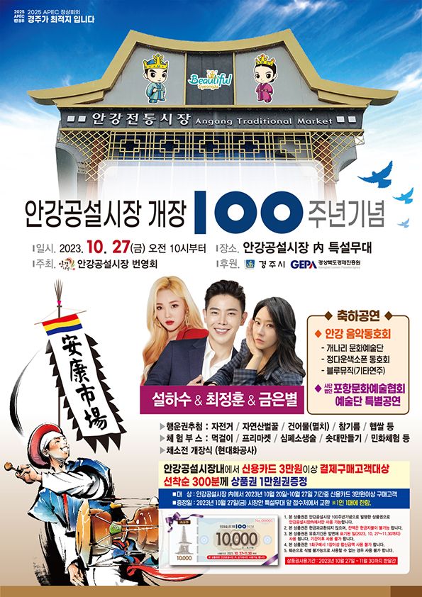 특히 이날 안강공설시장 내에서 3만원 이상 구매 고객대상으로 선착순 300명에게 상품권 1만원권을 증정하는 특별 이벤트도 실시된다.