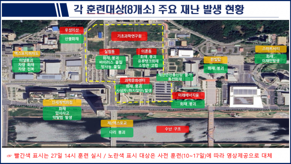 소방청과 대전광역시가 공동으로 주관하는 이번 훈련은 규모 7.5의 지진으로 건물과 다리, 지하차도 등이 붕괴되고 산불을 비롯한 동시다발적 화재와 폭발 상황을 가정해 실시하며 역대 최대규모로 진행된다.