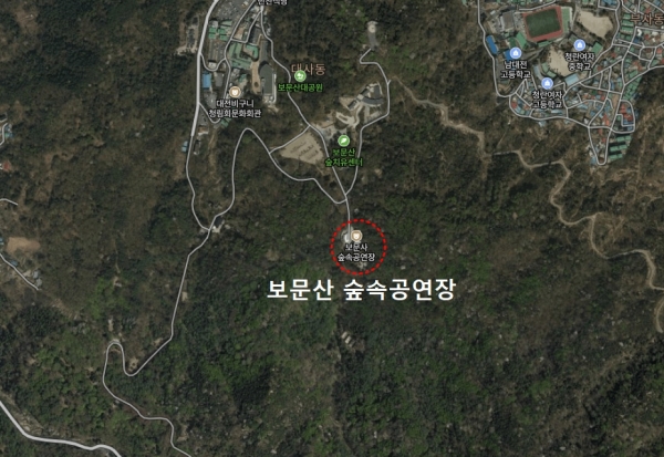 보문산 숲속공연장은 1966년 야외음악당으로 처음 조성된 이후 2013년 야외무대, 목재데크 관람석, 방송·조명시설 등을 리모델링 해 지금의 숲속공연장으로 활용 중이다.