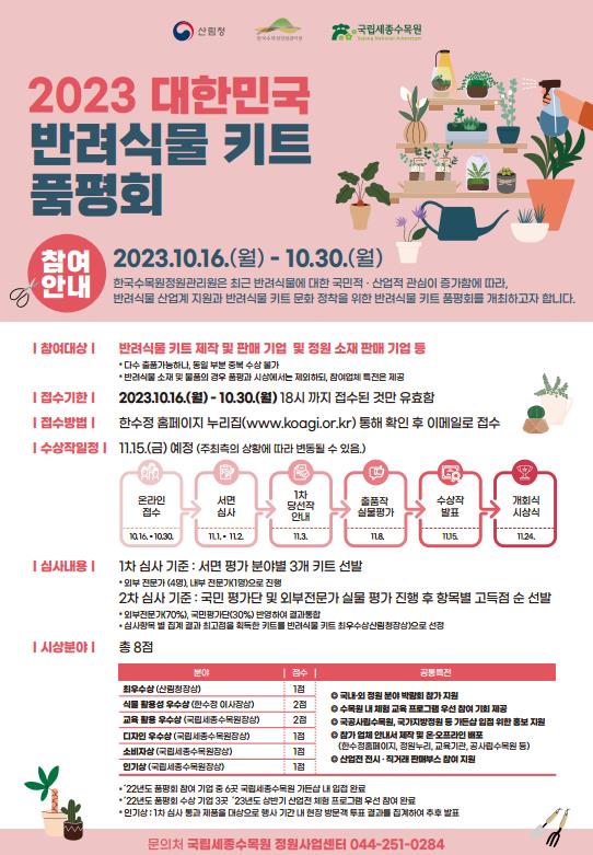 [금요저널] 한국수목원정원관리원은 오는 10월 30일까지 ‘2023 대한민국 반려식물 키트 품평회’ 참여기업을 모집한다.