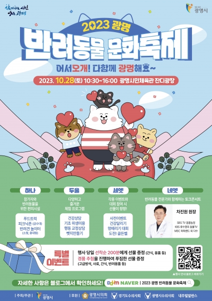 [금요저널] 광명시는 반려동물 문화 정착과 동물복지 인식 확산을 위해 제2회 광명시 반려동물 문화축제 ‘어서오개 다함께 광멍해요’를 개최한다.