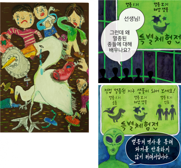 그림 부문 대상 수상작인 ‘노랑부리백로’ 작품은 해양쓰레기로 인해 고통받고 있는 백로의 모습을 완성도 높은 구도와 간결한 표현력으로 나타냈다는 점에서 높은 평가를 받았다.