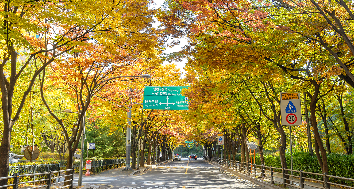 ‘양천단풍길 10선’의 총 연장은 10.84km로, 수종은 느티나무와 왕벚나무, 은행나무를 비롯해 도심에서 쉽게 볼 수 없는 메타세콰이어 등으로 구성돼 있다.